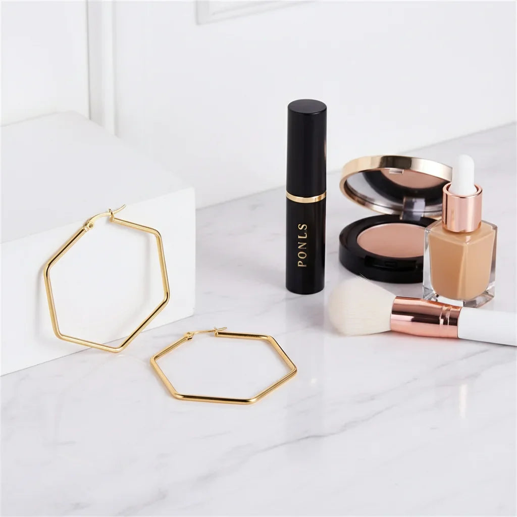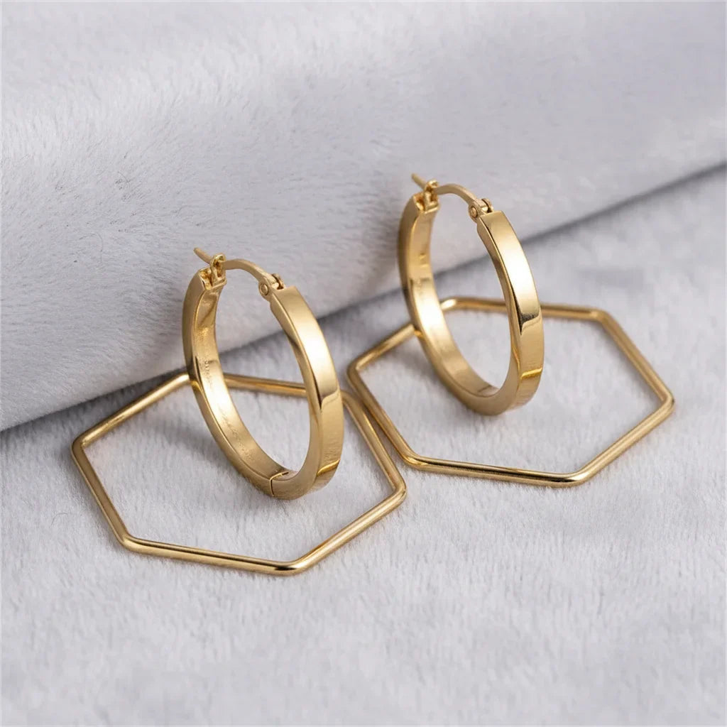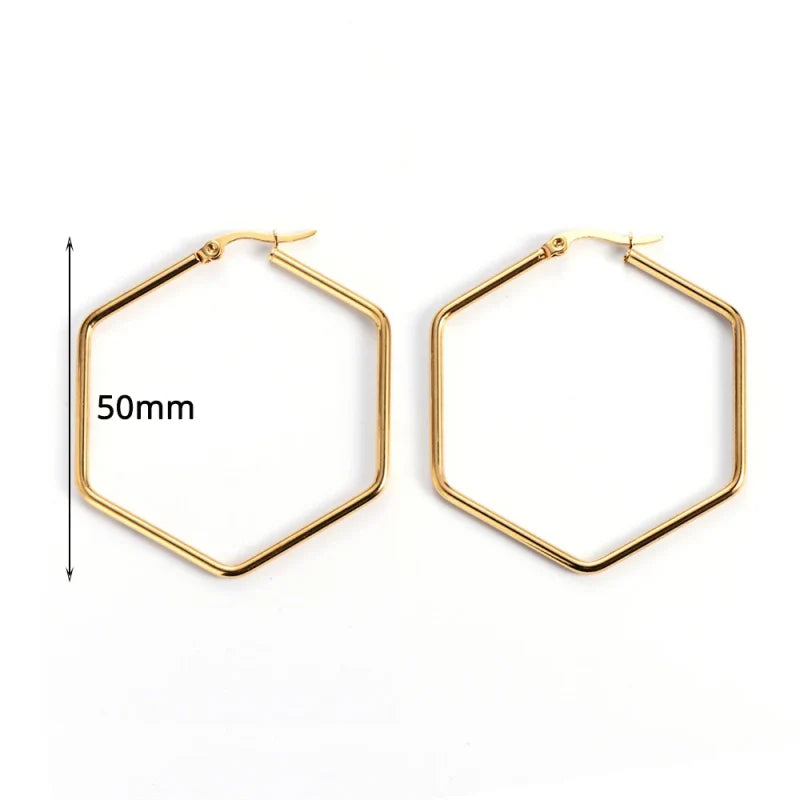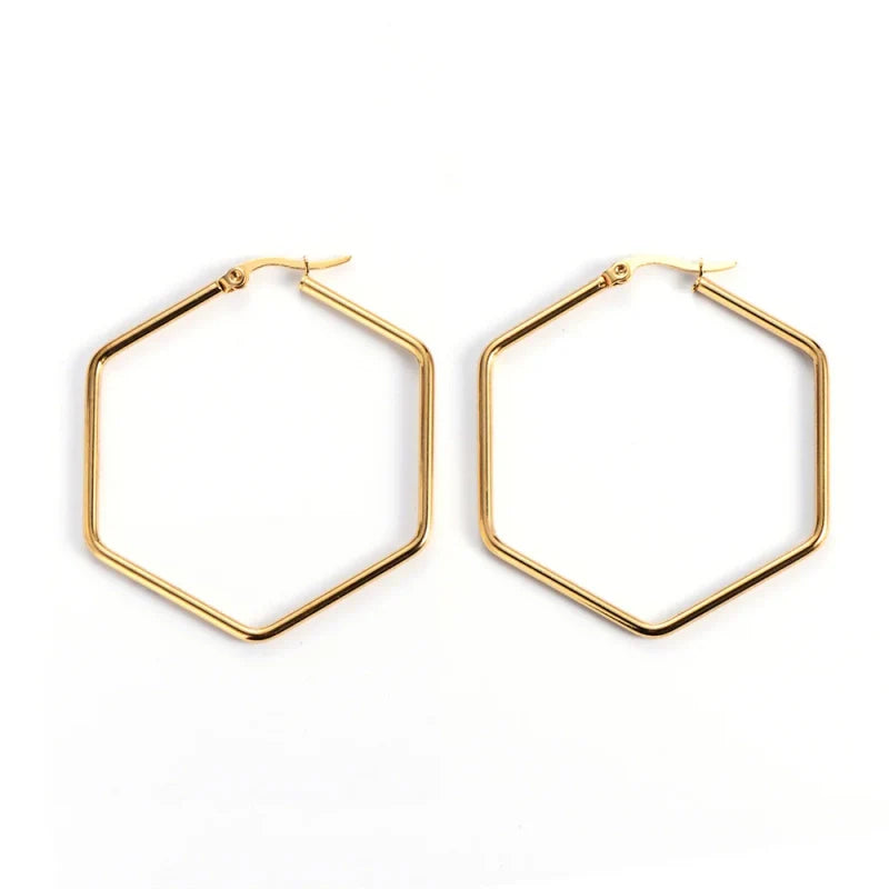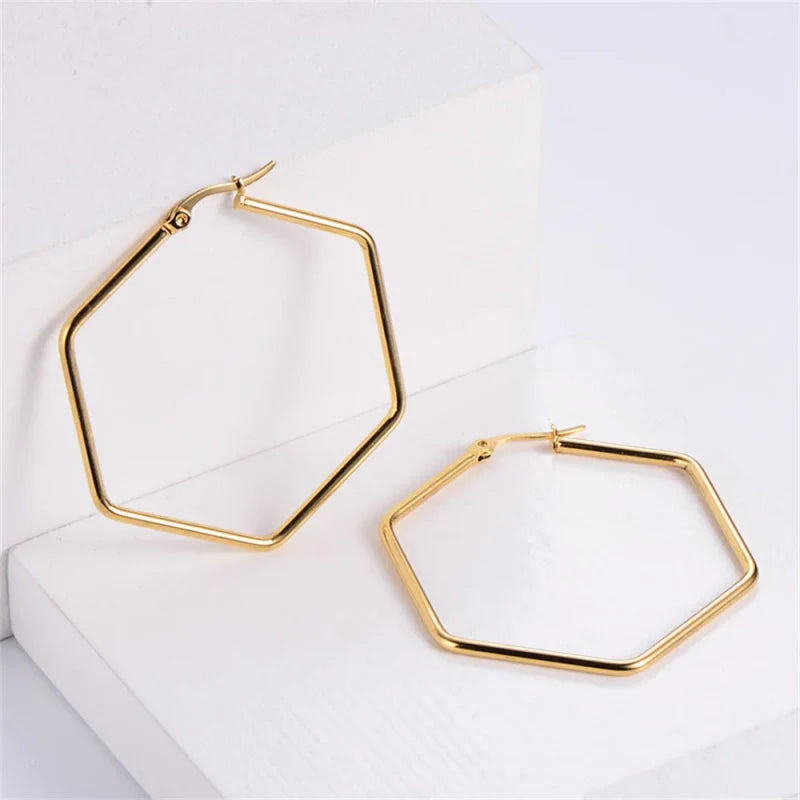 Une audace architecturale. Ces créoles hexagonales sculptent votre visage, affirmant une allure moderne et inoubliable.