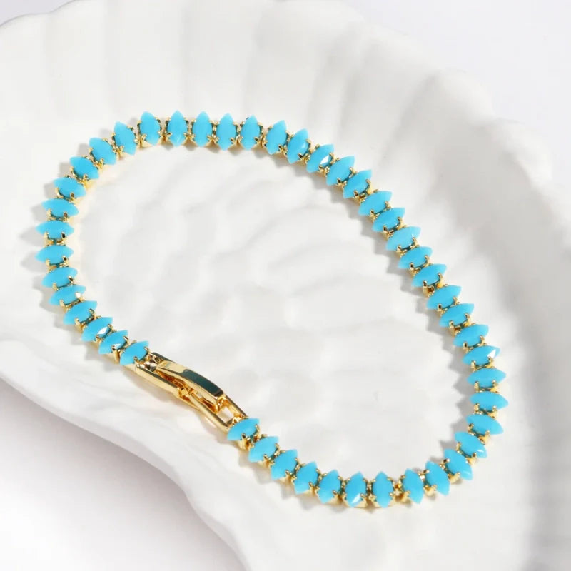 Découvrez l'élégance intemporelle de nos bracelets turquoise. Plaqués or 18K et résistants à l'eau, ils vous accompagnent avec raffinement, sans effort, au quotidien.