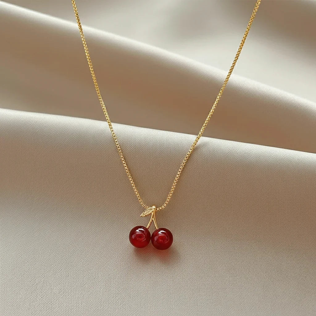 Chaque détail est une promesse de distinction. Une chaîne délicate, des cerises méticuleusement travaillées pour un éclat durable qui sublime votre allure, jour après jour.